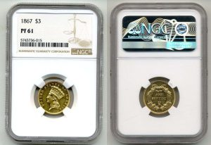 THREE DOLLAR INDIAN PRINCESS 1867 P NGC PF 61