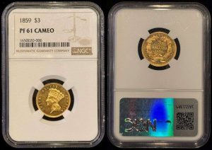 THREE DOLLAR INDIAN PRINCESS 1859 P NGC PF 61 ULTRA CAMEO